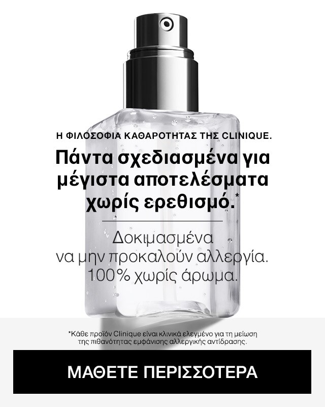 Η διεύθυνση ηλεκτρονικού ταχυδρομείου (email) σας θα χρησιμοποιηθεί αποκλειστικά για την αποστολή διαφημιστικών μηνυμάτων ηλεκτρονικού ταχυδρομείου και πληροφοριών για τα προϊόντα, τις εκδηλώσεις ή τις προσφορές της Clinique. Μπορείτε ανά πάσα στιγμή να μας ζητήσετε να μη σας αποστέλλουμε διαφημιστική επικοινωνία μέσω ηλεκτρονικού ταχυδρομείου κάνοντας κλικ στο σύνδεσμο διαγραφής (Unsubscribe) που θα βρείτε εντός των διαφημιστικών μηνυμάτων ηλεκτρονικού ταχυδρομείου που λαμβάνετε από εμάς. Για περισσότερες πληροφορίες σχετικά με τις πρακτικές απορρήτου της Estee Lauder Hellas S.A. – Clinique, τα δικαιώματα απορρήτου σας και πώς να εξασκήσετε αυτά τα δικαιώματα, παρακαλούμε να δείτε την Πολιτική Απορρήτου.